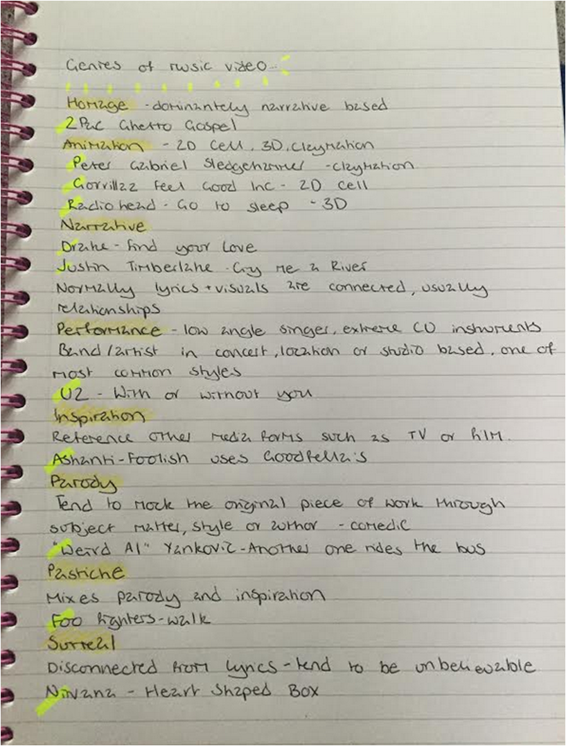 For this task, I researched different types of music videos. It has expanded my knowledge upon music video production and planning. This will be useful for my construction as I have been inspired and understand how types are separated. I plan to combine 2 types in my final piece; narrative and performance.